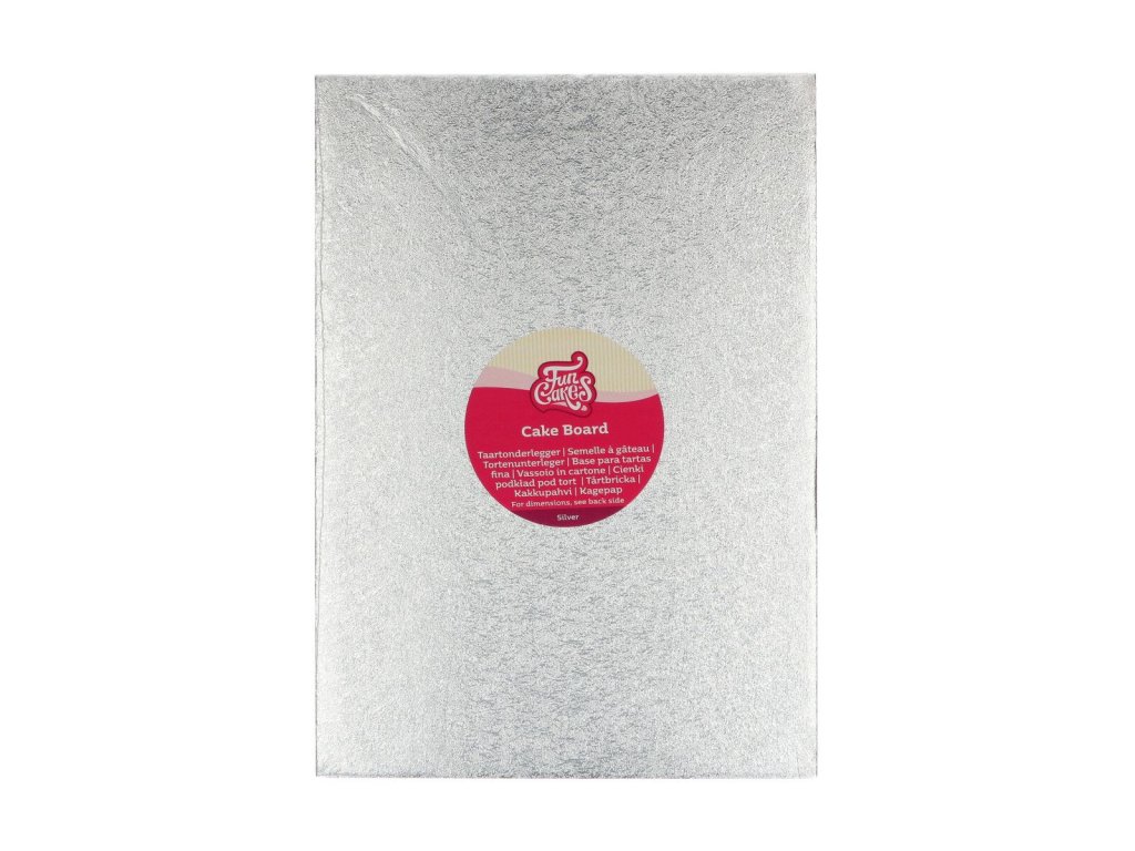Podkład jest wykonany z kartonu o elegancko wyglądającej powierzchni w kolorze srebrnym. Podkład został wykonany z mocniejszych materiałów, dzięki czemu utrzyma również cięższe torty. Podkład pod tort o prostokątnym kształcie nada tortom luksusowy wygląd. Sprawdzi się głównie do uroczystych i weselnych tortów.