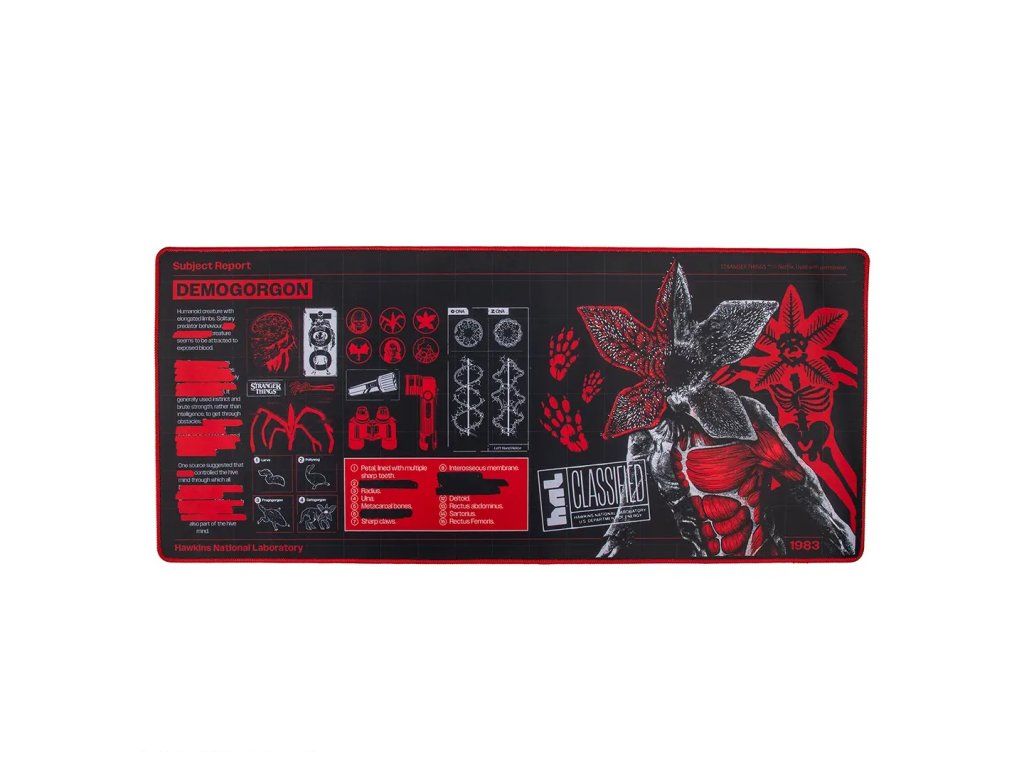 Przygotuj się na solidną dawkę zabawy prosto na swoim biurku! Z tą świetną podkładką Stranger Things z motywem Demogorgona Twój kącik do pracy lub grania zamieni się w przygodę rodem z Upside Down.