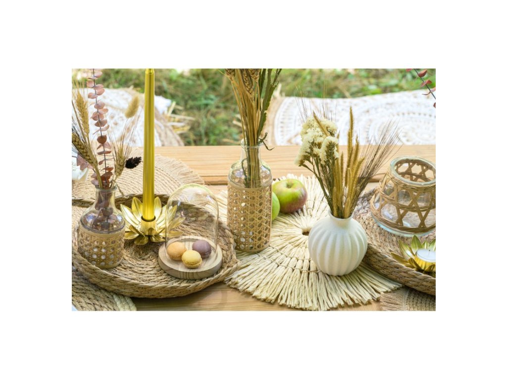Nadaj swojemu stołowi naturalny styl dzięki okrągłym podkładkom pod talerze. Wykonane z wysokiej jakości naturalnych materiałów podkładki wprowadzą do Twojej jadalni rustykalny, a zarazem elegancki wygląd.