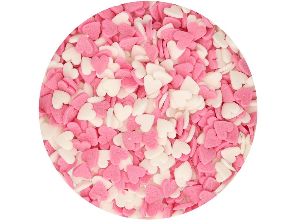 Jadalną dekorację w kształcie serduszek możesz wykorzystać do posypania cupcakesów, cake pops, lodów, tortów i innych deserów. Świetnie nadaje się do dekoracji tortów zarówno walentynkowych, weselnych jak i na inne romantyczne okazje.