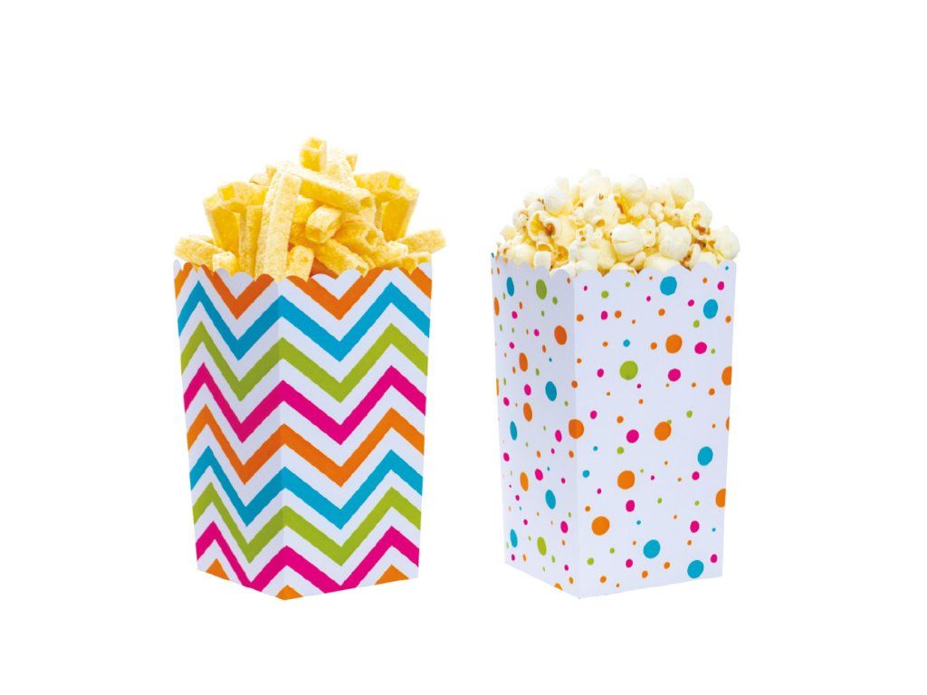 Świetne ozdobne pudełka o wszechstronnym zastosowaniu. Pudełka papierowe mogą służyć nie tylko do serwowania popcornu, ale także do przechowywania różnych imprezowych przekąsek, takich jak cukierki, ciasteczka, orzeszki ziemne, chipsy itp. To praktyczne pudełko sprawdzi się na każdym przyjęciu lub imprezie tematycznej.