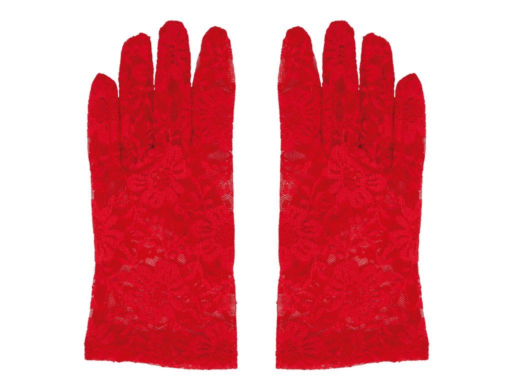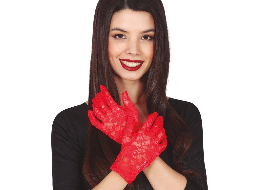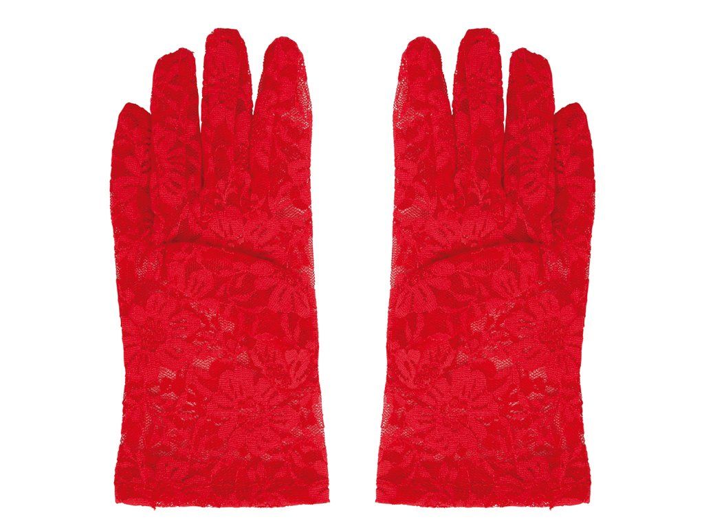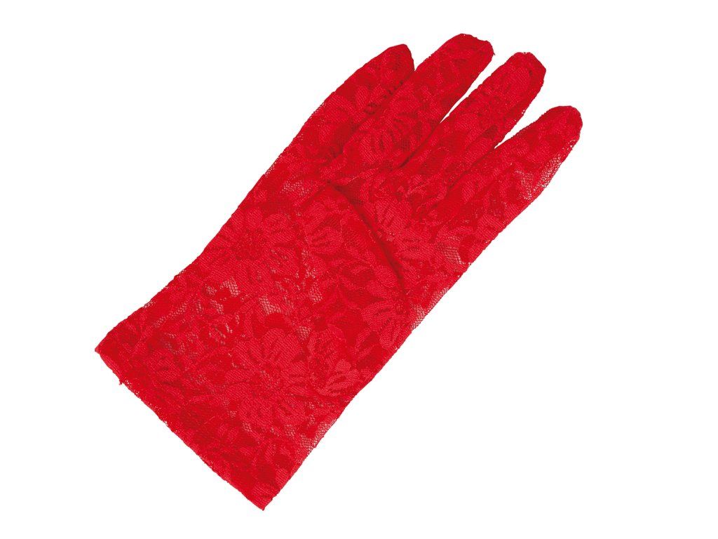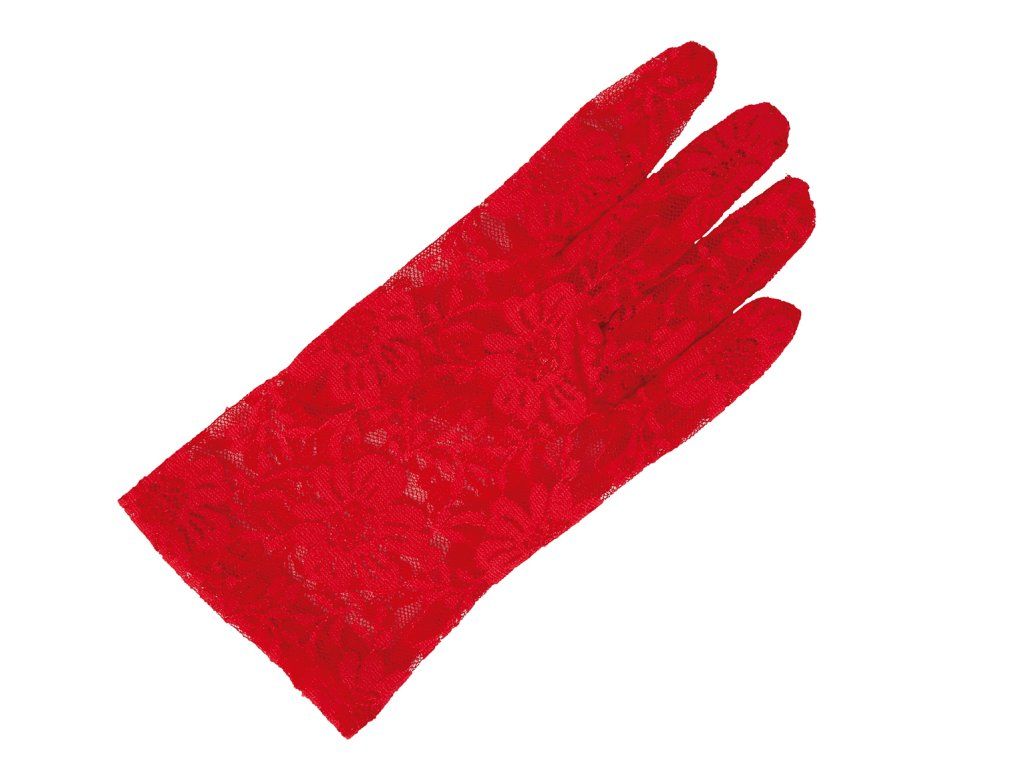 Rękawiczki - krótkie, koronkowe, czerwone 22 cm