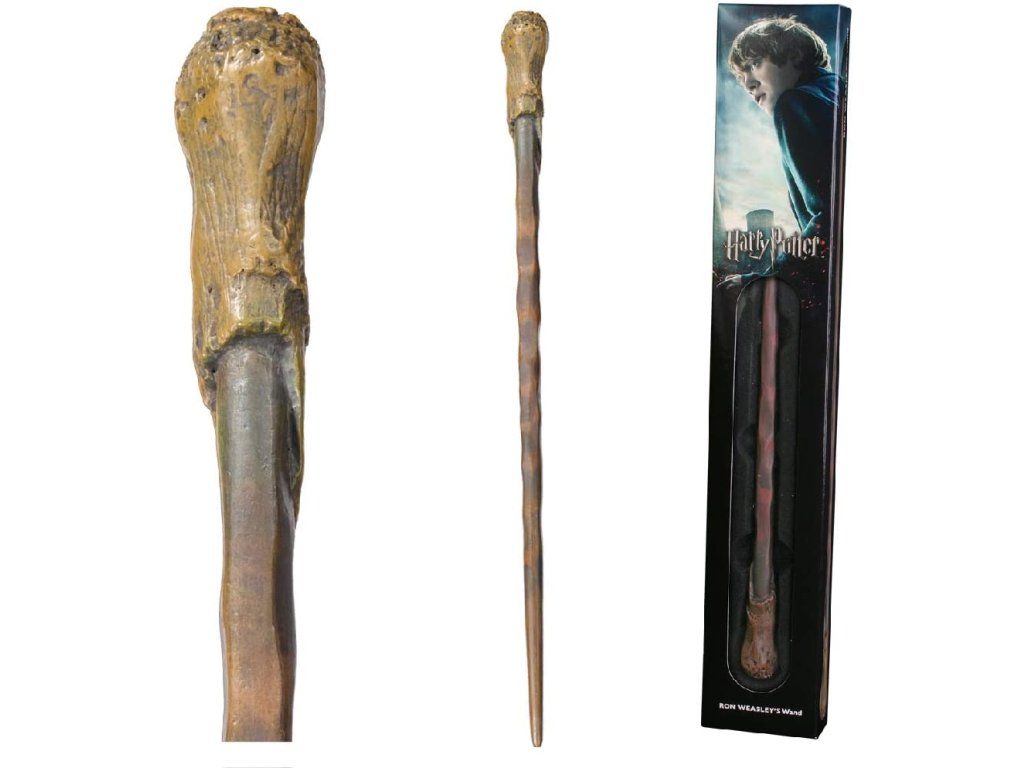 To perełka, która zachwyci każdego fana filmowej postaci jaką jest czarodziej Ron Weasley. Ręcznie malowana autentyczna replika jego różdżki w eleganckim pudełku to przedmiot kolekcjonerski, idealny na prezent z okazji urodzin albo świąt Bożego Narodzenia.