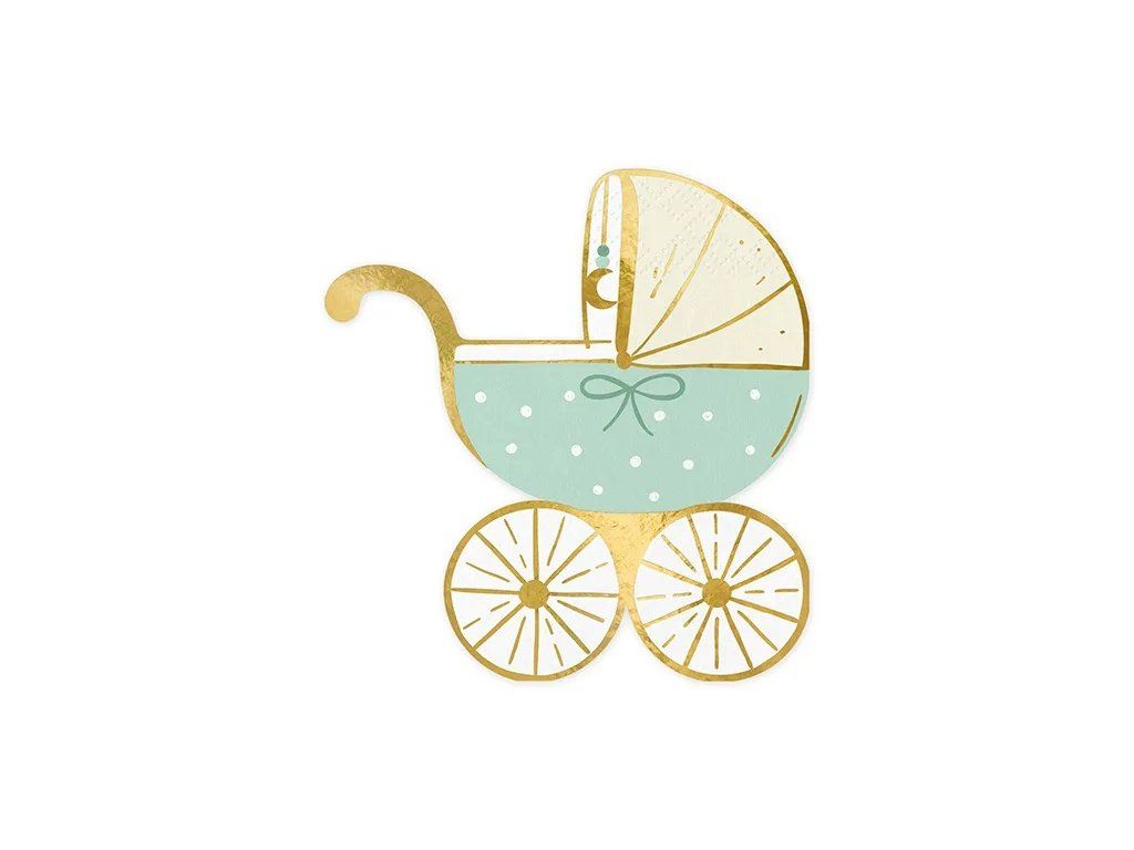 Serwetki z motywem niebieskiego wózeczka to uroczy dodatek na przyjęcia Baby shower, z okazji chrztu lub narodzin dziecka. Wzór z niebieskim wózeczkiem jest idealny dla chłopca, nadaje dekoracji stołu delikatnego uroku i tematycznej atmosfery. Te serwetki to doskonały sposób, aby uczynić każdą uroczystość bardziej wyjątkową.