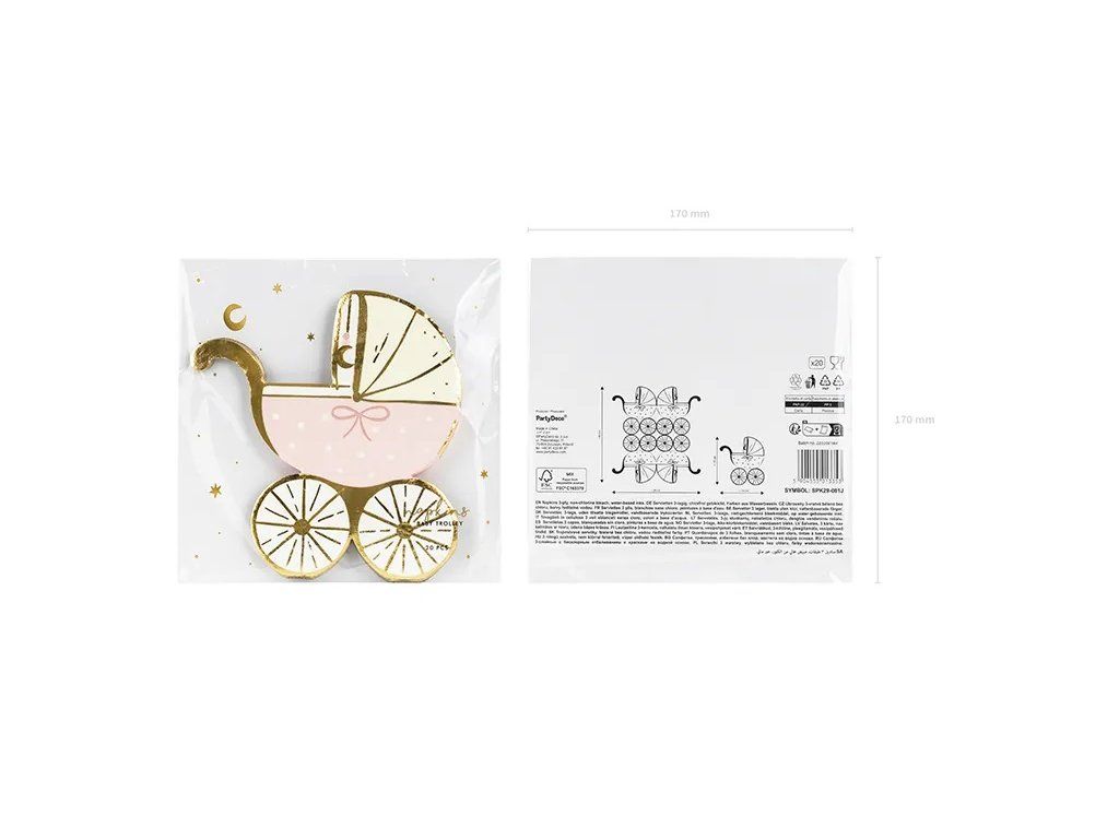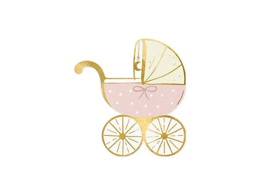 Serwetki z motywem różowego wózeczka to uroczy dodatek na przyjęcia Baby shower, z okazji chrztu lub narodzin dziecka. Wzór z różowym wózeczkiem jest idealny dla dziewczynki, nadaje dekoracji stołu delikatnego uroku i tematycznej atmosfery. Te serwetki to doskonały sposób, aby uczynić każdą uroczystość bardziej wyjątkową.