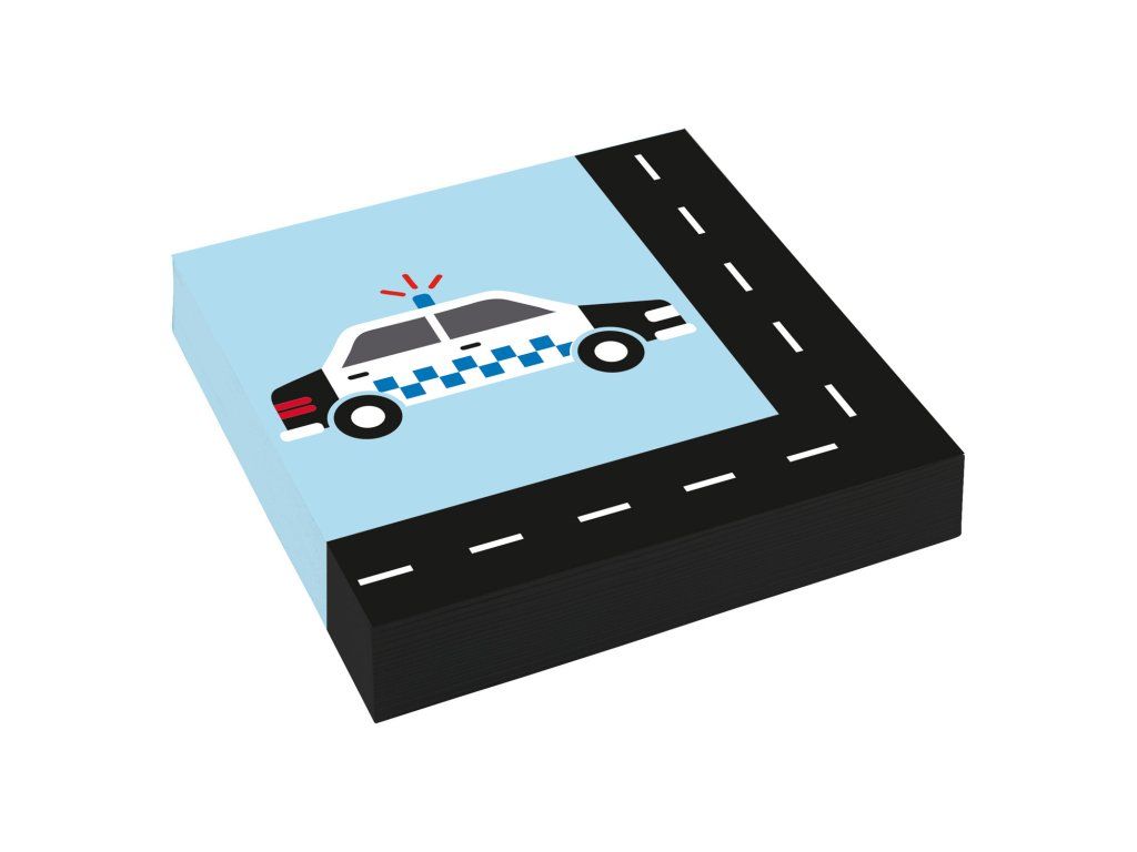 Te piękne serwetki z motywem ruchu drogowego (auto policyjne) idealnie sprawdzą się na imprezie dziecięcej, przyjęciu urodzinowym i przy innych okazjach do świętowania.