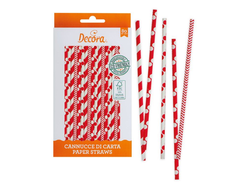 Słomki - mix czerwono/białe 80 szt