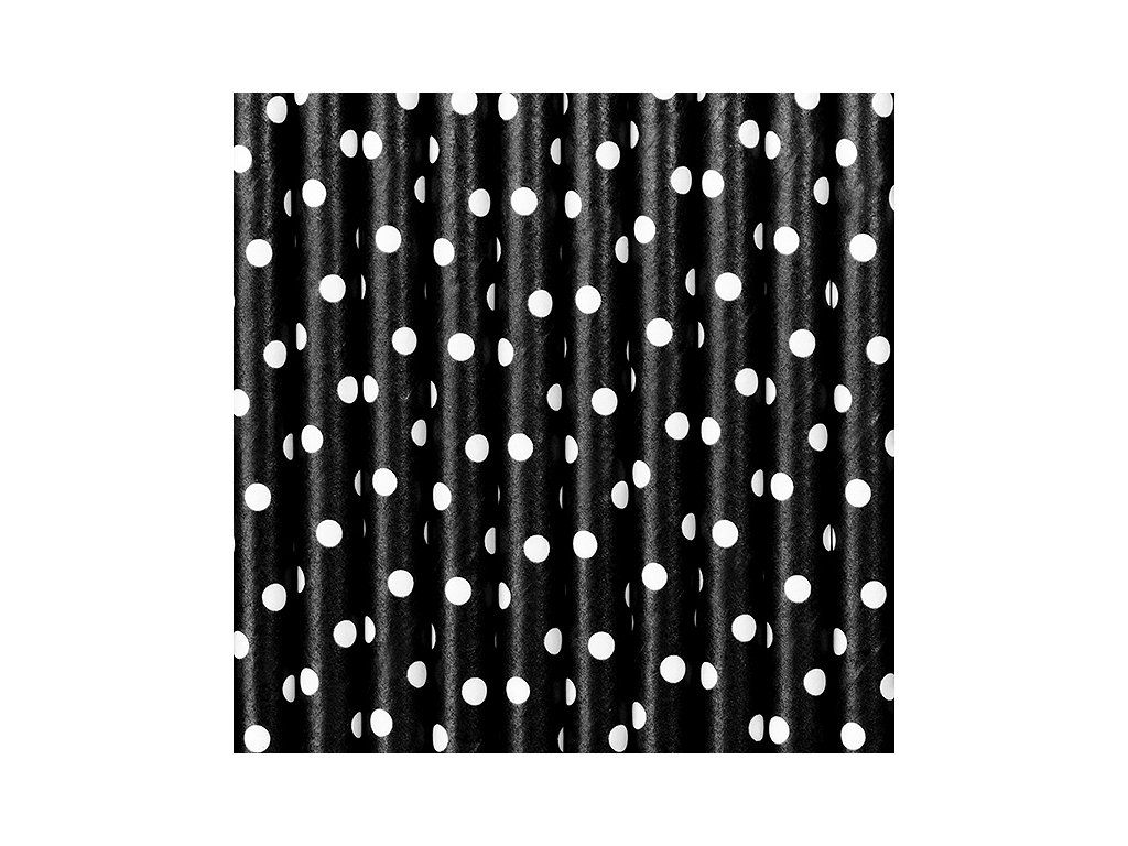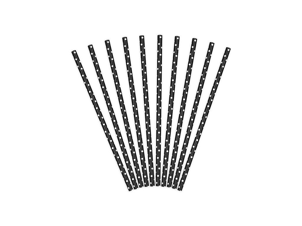 Słomki papierowe w kropki - czarne 10 szt.