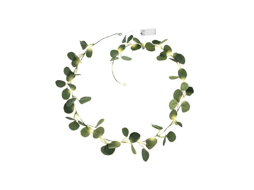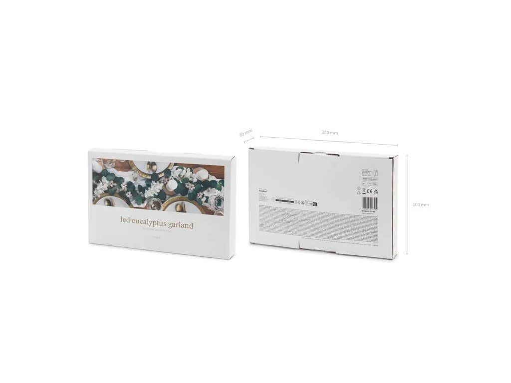 Udekoruj swoją imprezę tematyczną lub wesele tą girlandą ze sztucznym eukaliptusem z 20 diodami LED. Zielona girlanda eukaliptusowa jest doskonałym dodatkiem do Twojej ślubnej dekoracji, tworząc naturalne i piękne otoczenie. Piękne dekoracyjne liście będą wyglądać wspaniale zawieszone wzdłuż okien, drzwi i mogą być również używane jako dekoracja na stołach.