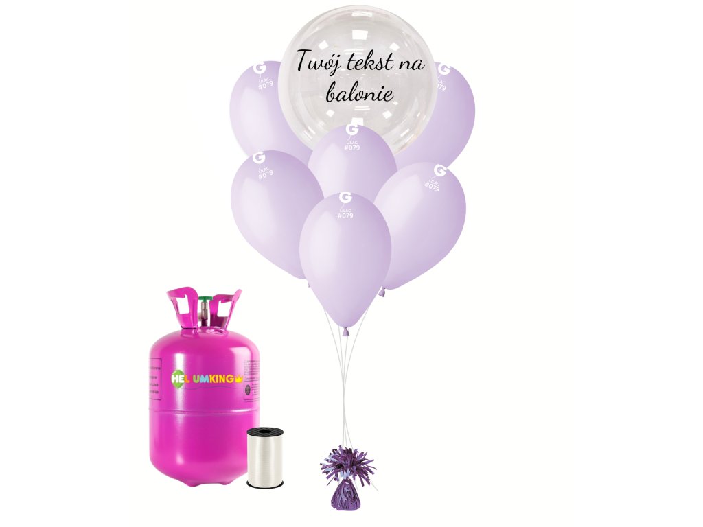 Spersonalizowany zestaw imprezowy z helem - fioletowy z przezroczystym balonem 11 szt.