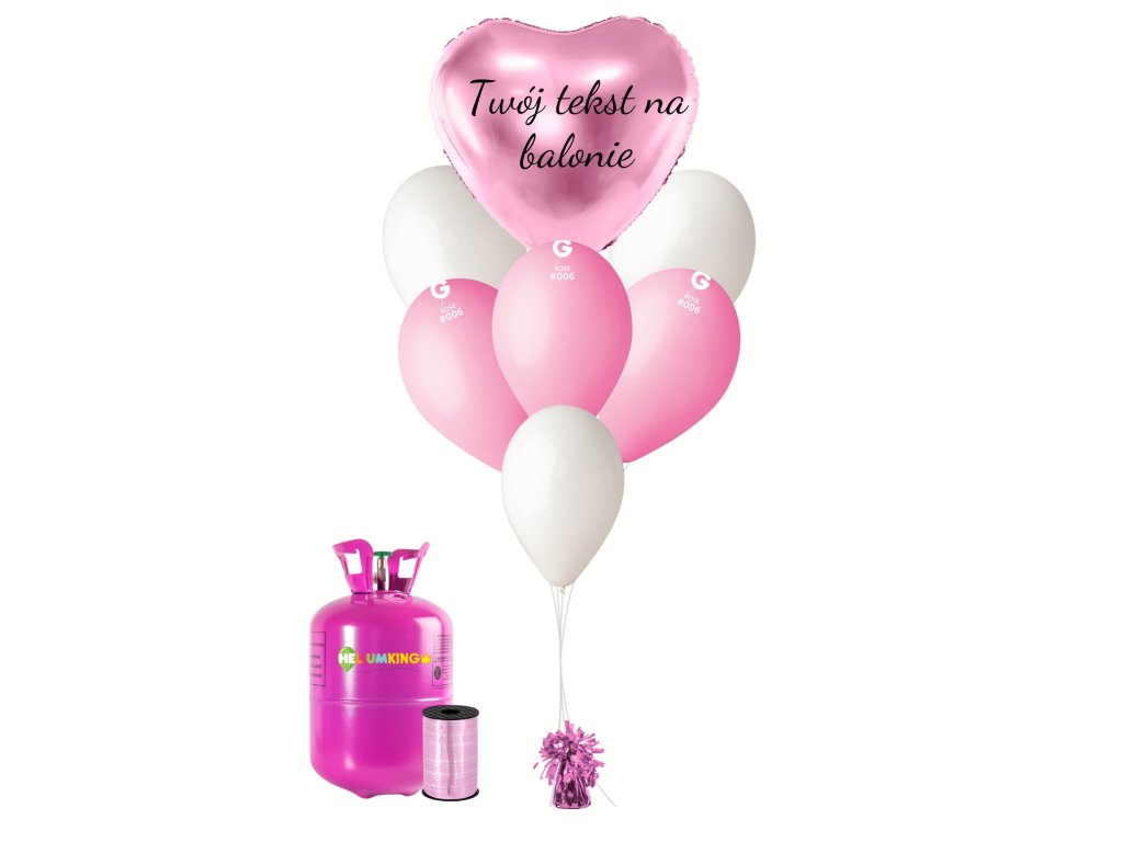 Spersonalizowany zestaw imprezowy z helem - różowe serce 16 szt.