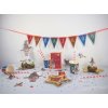 - zestaw zawiera: 6x podkładka pod talerz, 6x zaproszenie, 6x kubek, girlanda, 11x nakładka na babeczkę, nakładka na tort, 15x konfetti