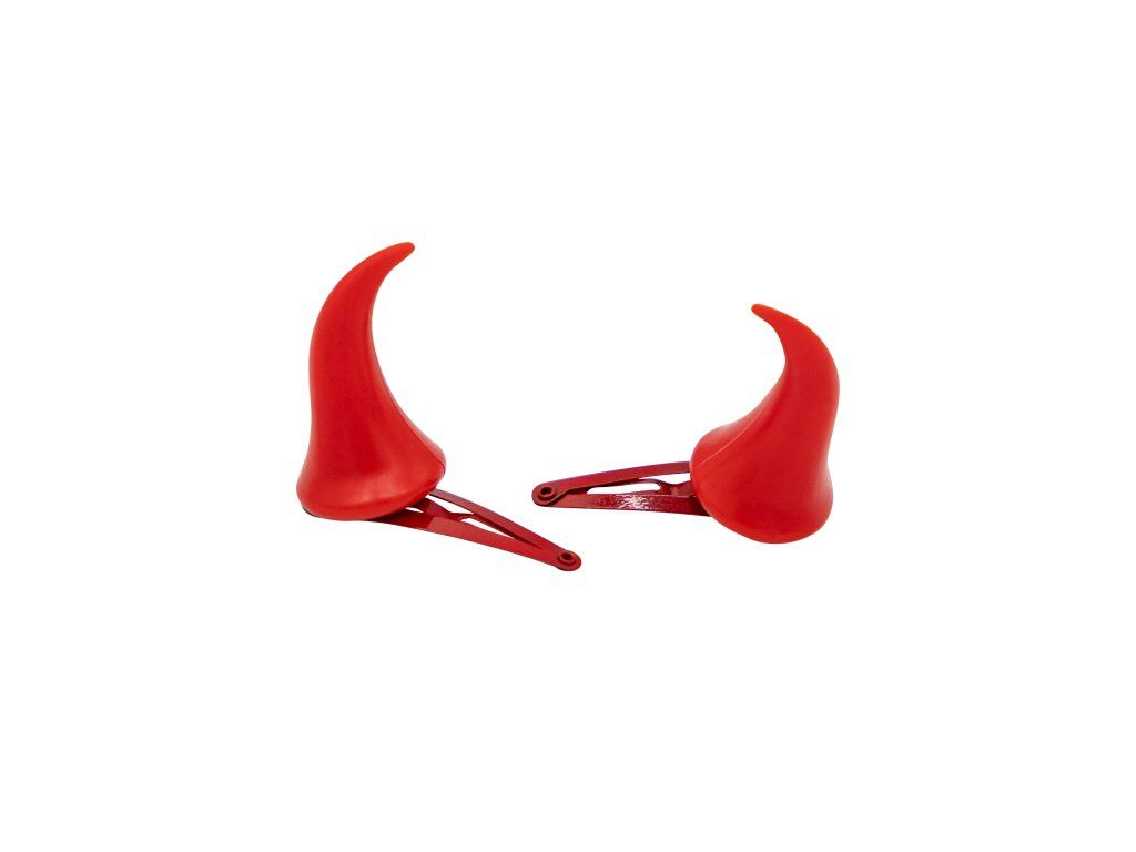 Zestaw spinek do włosów w kształcie małych rogów, które będą doskonałym uzupełnieniem karnawałowego kostiumu diabła czy diablicy.