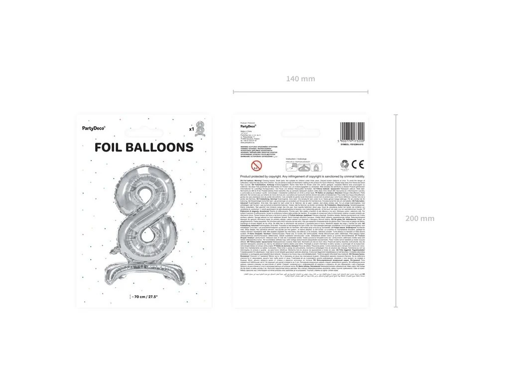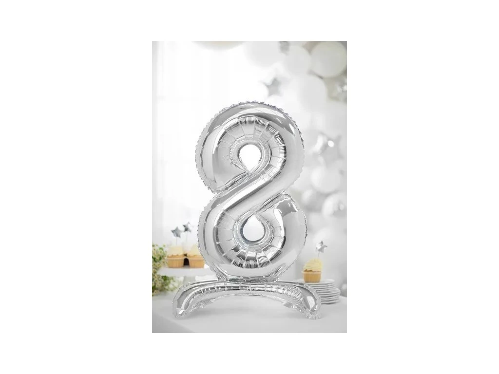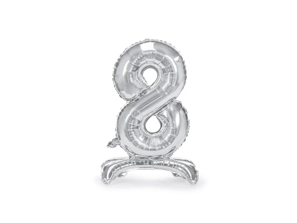 Stojący balon foliowy 8 srebrny 70 cm