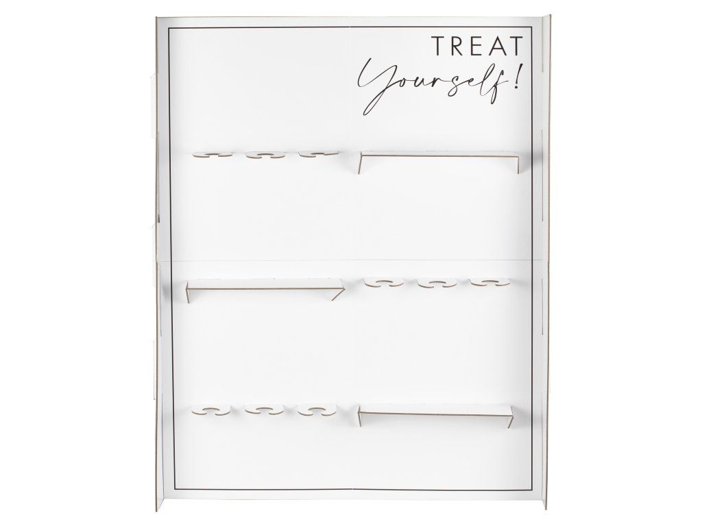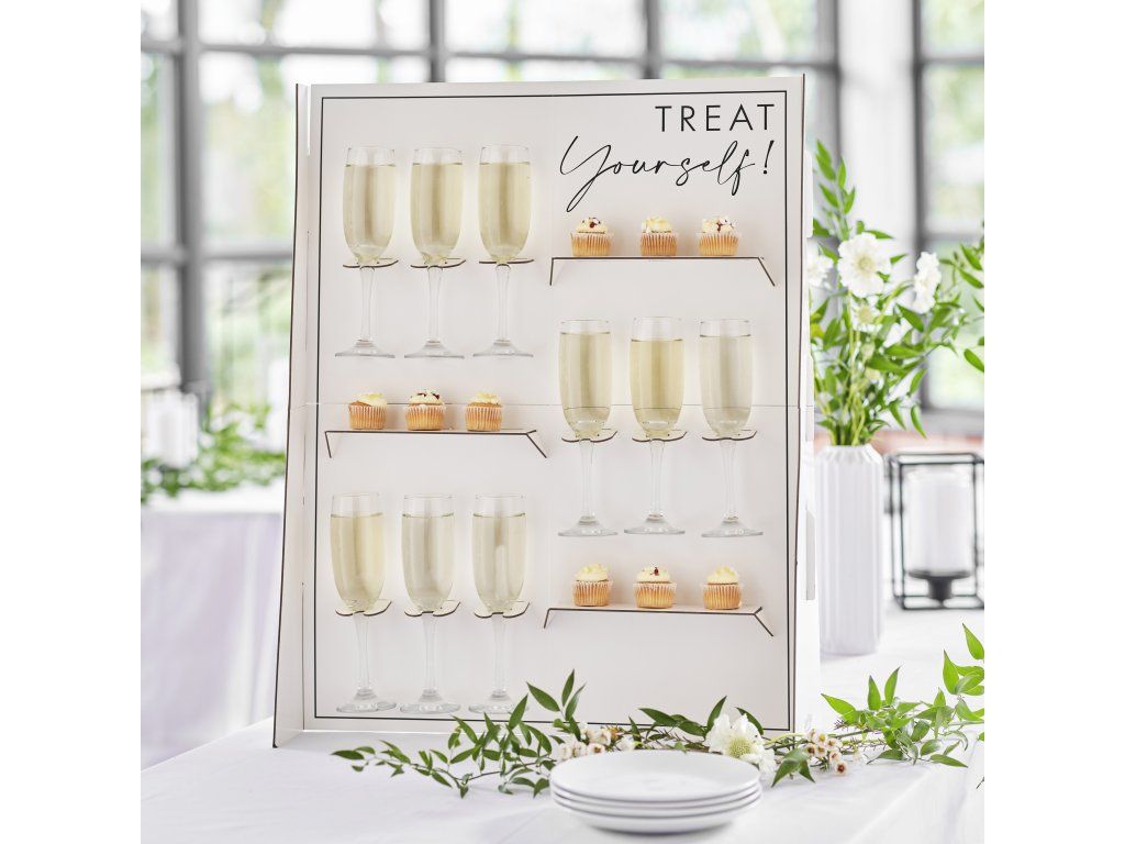 Każdy moment zasługuje na odrobinę słodkości i orzeźwienia. Obserwuj twarze swoich gości, gdy zobaczą ten imponujący stojak na napoje i desery. Stojak ten zawiera 9 uchwytów na napoje i 3 półki na smakołyki. Umieść go przy wejściu do sali, gdzie goście będą mogli wznieść toast, lub postaw go obok słodkości na Twoim weselu, urodzinach czy innej uroczystości – z pewnością wszyscy go zauważą i chętnie skorzystają.