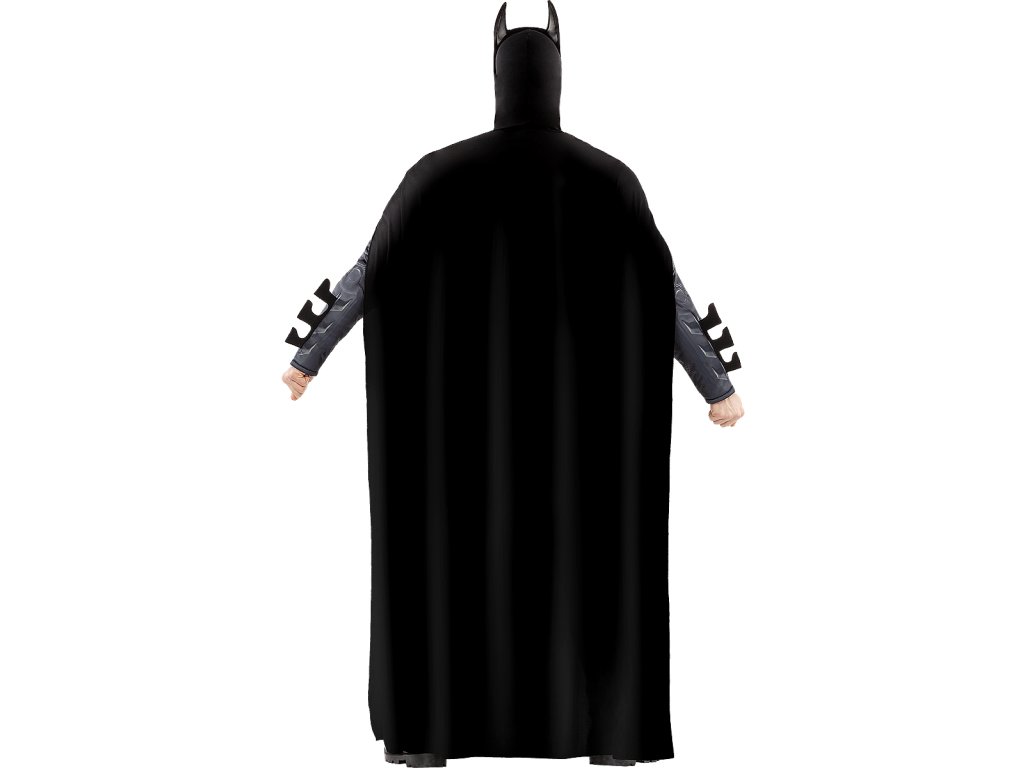 wygodny kombinezon, stylowy pas na wszystkie gadżety Nietoperza, wytrzymałą półmaskę, która ukryje Twoją sekretną tożsamość, oraz wyjątkowo dużą pelerynę, która zapewni Ci dramatyczny efekt za każdym razem, gdy się odwrócisz!