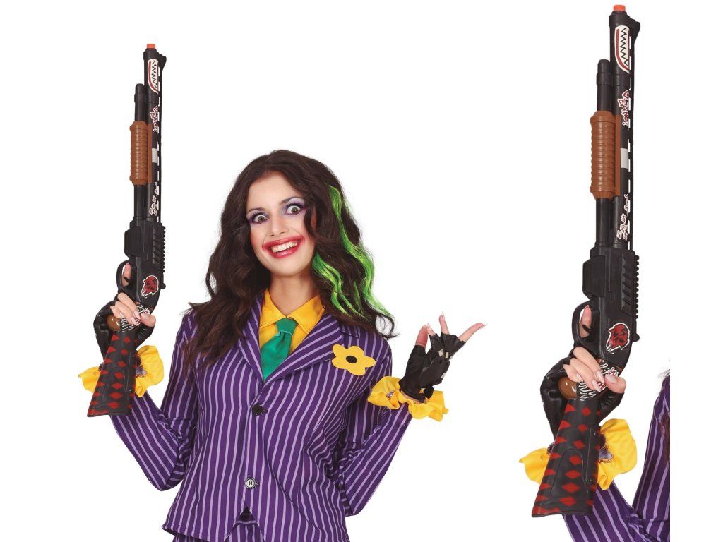 Ta strzelba inspirowana Jokerem to idealny dodatek do kostiumu. Ma realistyczny wygląd z detalami w stylu ikonicznego przestępcy. Doskonała na karnawał lub tematyczne imprezy. Dodaj swojemu kostiumowi autentyczności i wyróżnij się na każdej imprezie.
