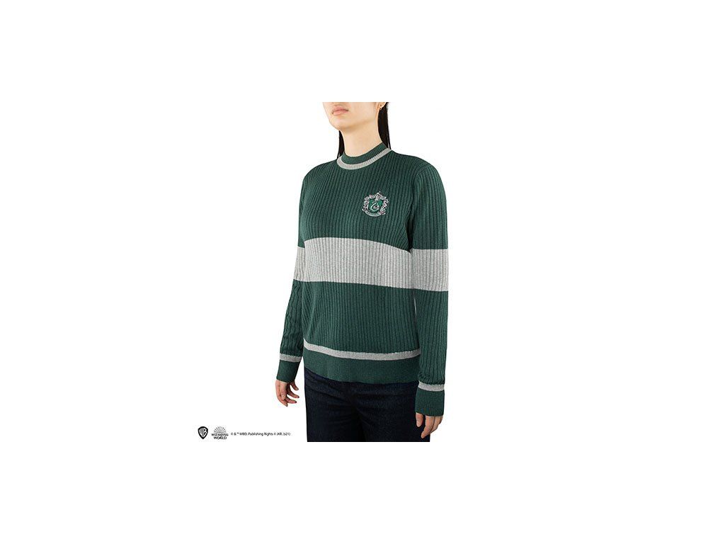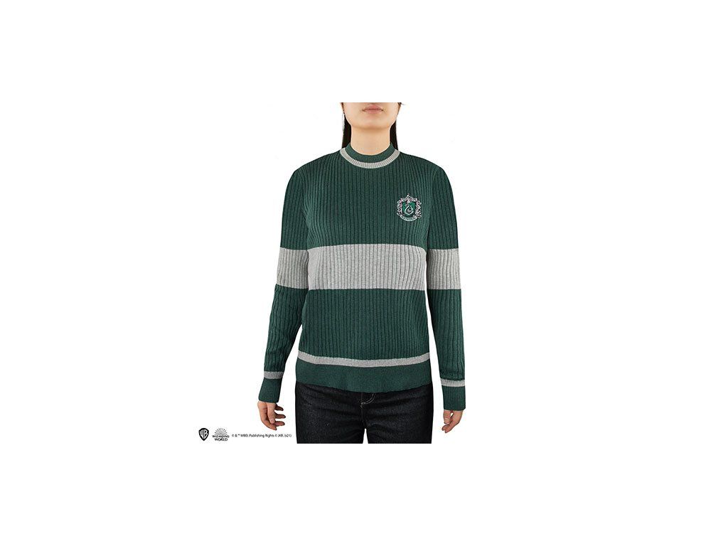 Kiedy następnym razem wybierzesz się na mecz Quidditcha albo sesję czarów, ubierz ten sweter ze znakiem jednego z domów Hogwartu – Slytherinu! Zielony sweter z kolorowym herbem Slytherinu nie pozostawi w nikim wątpliwości, że ma przed sobą studenta magii z niezwykłego świata Harrego Pottera.