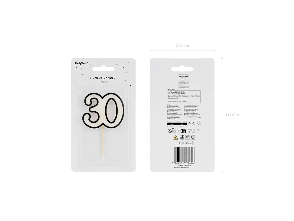 Trzydziestka na karku? Zero stresu, tylko wielka impreza! Ta czarno-biała urodzinowa świeczka z numerem 30 jest gotowa rozświetlić każde ciasto, tort czy deser i pokazać wszystkim, że wiek to tylko liczba (a twoja dziś pięknie świeci!). Przygotuj balony, konfetti i sporą dawkę śmiechu – z tą świeczką twoja impreza będzie legendarna! Okrągłe urodziny zasługują na iskrę, więc zapal świeczkę i baw się świetnie w ten wyjątkowy dzień z uśmiechem od ucha do ucha!