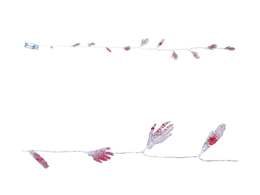 Szykujesz straszną imprezę Halloween? Stwórz niezwykłą halloweenową atmosferę grozy za pomocą strasznych dekoracji. Ta halloweenowa dekoracja w postaci łańcucha z zakrwawionymi rękami to dodatek imprezowy, który zrobi mocne wrażenie, a do tego będzie widoczny z daleka.