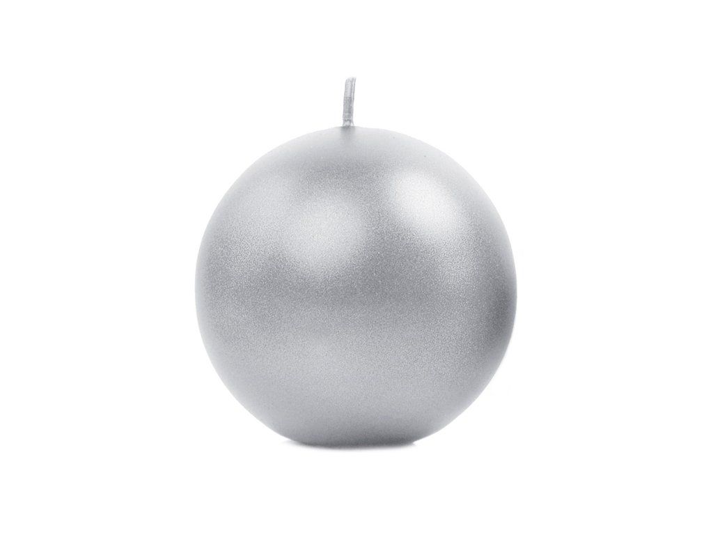 Świeczka - kula, metaliczna srebrna 8 cm