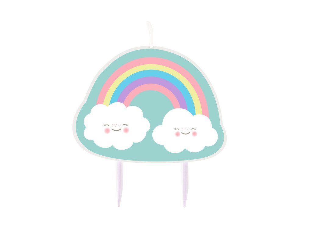Świeczka na tort - Uśmiechnięte chmurki i tęcza