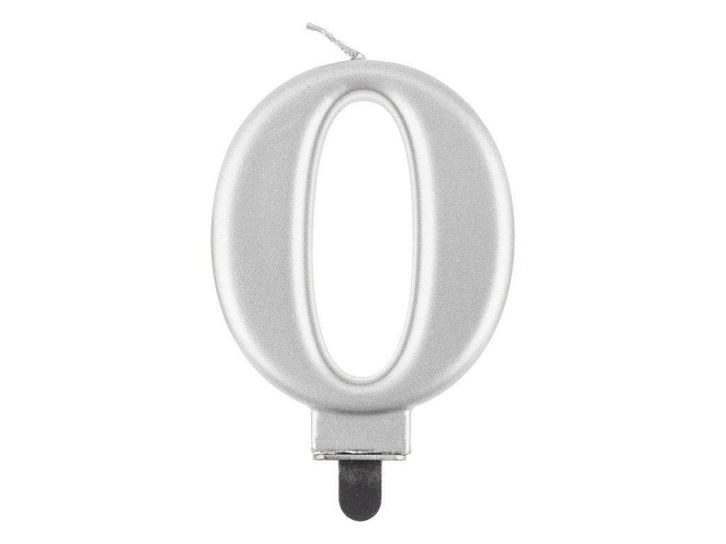Świeczka urodzinowa 0 metaliczna srebrna