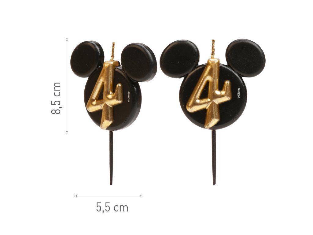 Stylowa i oryginalna świeczka z numerem 4 w designie kultowej główki Myszki Miki! Eleganckie połączenie czerni i złota nadaje tortom luksusowy wygląd i ucieszy małych oraz dużych fanów Disneya.