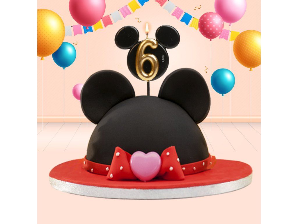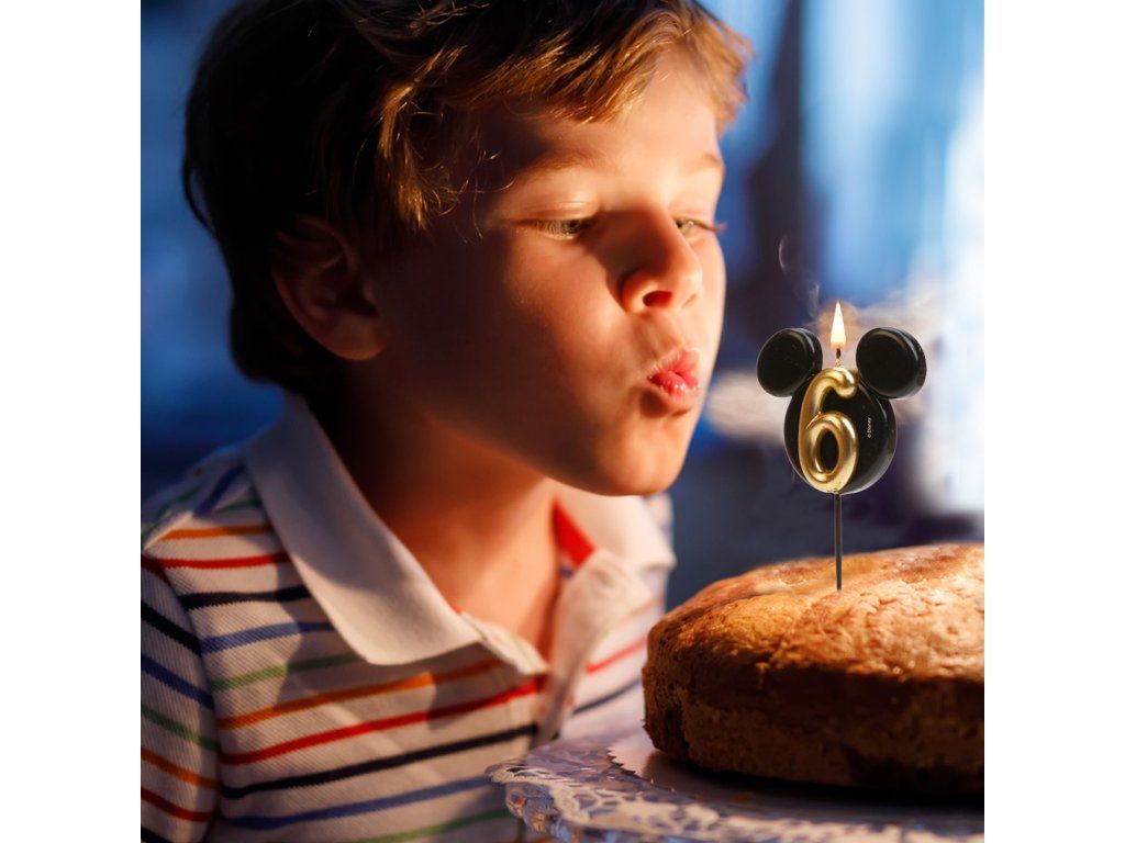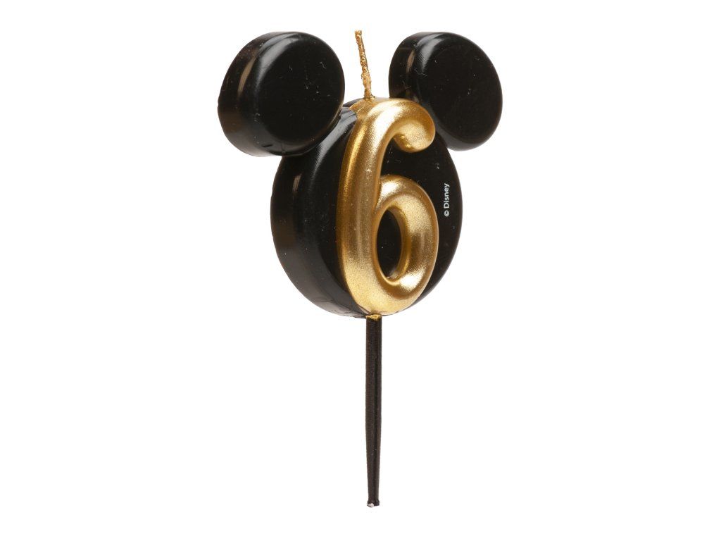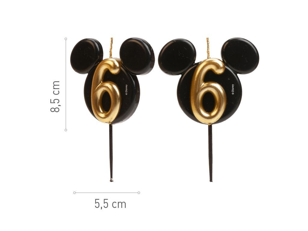 Stylowa i oryginalna świeczka z numerem 6 w designie kultowej główki Myszki Miki! Eleganckie połączenie czerni i złota nadaje tortom luksusowy wygląd i ucieszy małych oraz dużych fanów Disneya.