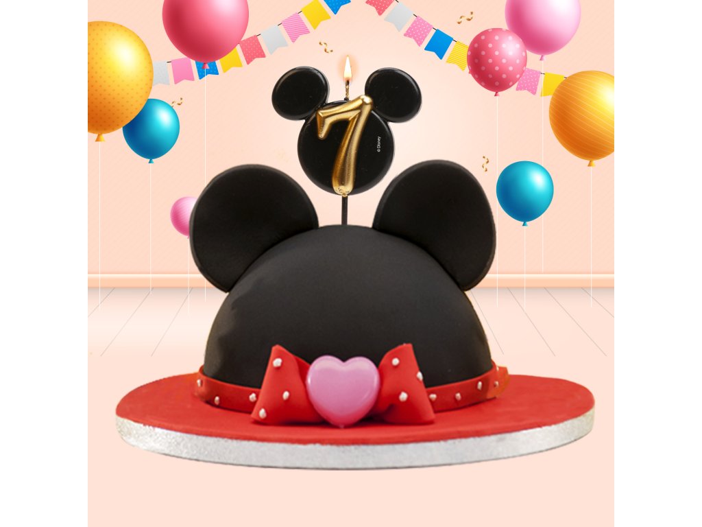 Stylowa i oryginalna świeczka z numerem 7 w designie kultowej główki Myszki Miki! Eleganckie połączenie czerni i złota nadaje tortom luksusowy wygląd i ucieszy małych oraz dużych fanów Disneya.