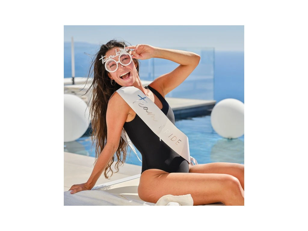 Spraw, aby Twoje druhny świętowały z Tobą wieczór panieński w naprawdę wyjątkowym stylu. Podaruj im te białe szarfy ze wstążkami i błyszczącym srebrnym napisem Team Bride.