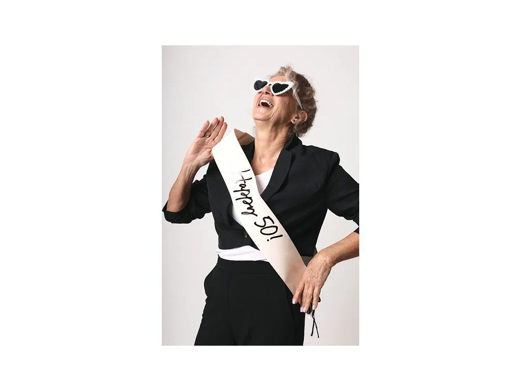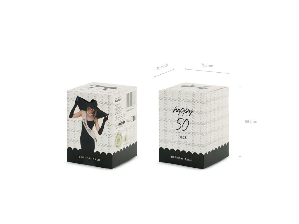 Pięćdziesiątka na horyzoncie? To wymaga porządnego show! Z tą szarfą z napisem "Happy 50" będziesz niezapomnianą gwiazdą wieczoru – niezależnie od tego, czy tańczysz na stole, czy tylko nieśmiało uśmiechasz się przy torcie. Świętuj okrągłe urodziny z humorem i stylem, bo pięćdziesiąt to tylko liczba (a do tego wciąż świetnie wyglądasz)! Idealny dodatek do zwariowanych zdjęć, przytulania balonów i rozśmieszania gości. Niech żyje pięćdziesiątka – i jeszcze lepsze lata, które nadejdą!