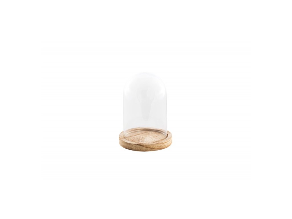 Szklany dzwonek dekoracyjny z drewnianą podstawą 10 x 13,7 cm