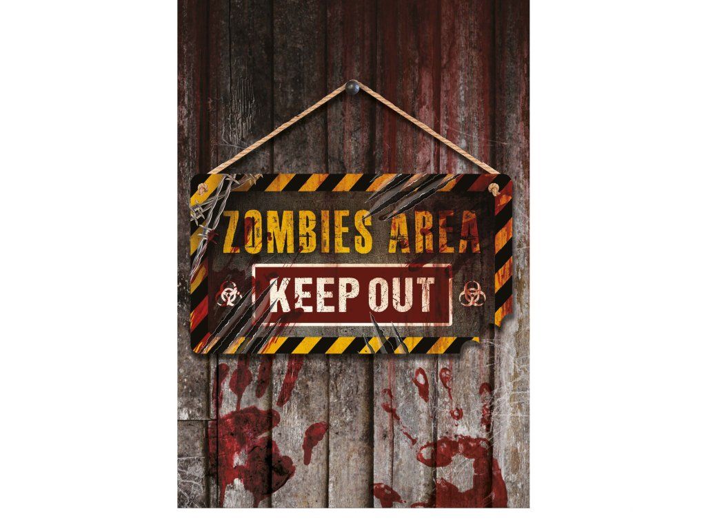 Stwórz niezapomnianą imprezę Halloween dzięki różnym strasznym dekoracjom. Doskonałym dodatkiem na Halloween jest również ta tabliczka na drzwi z napisem, która nadaje się do stworzenia przerażającej atmosfery na każdą okazję.