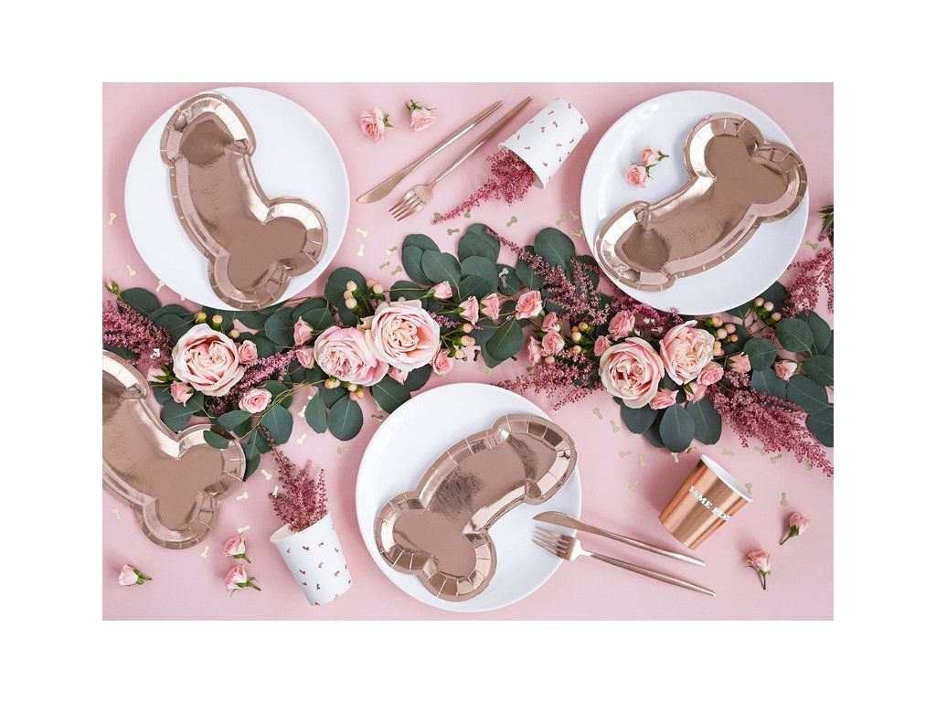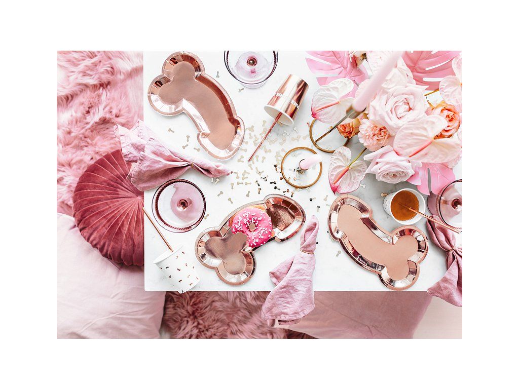 wykonane z metalicznego papieru w kolorze różowozłotym