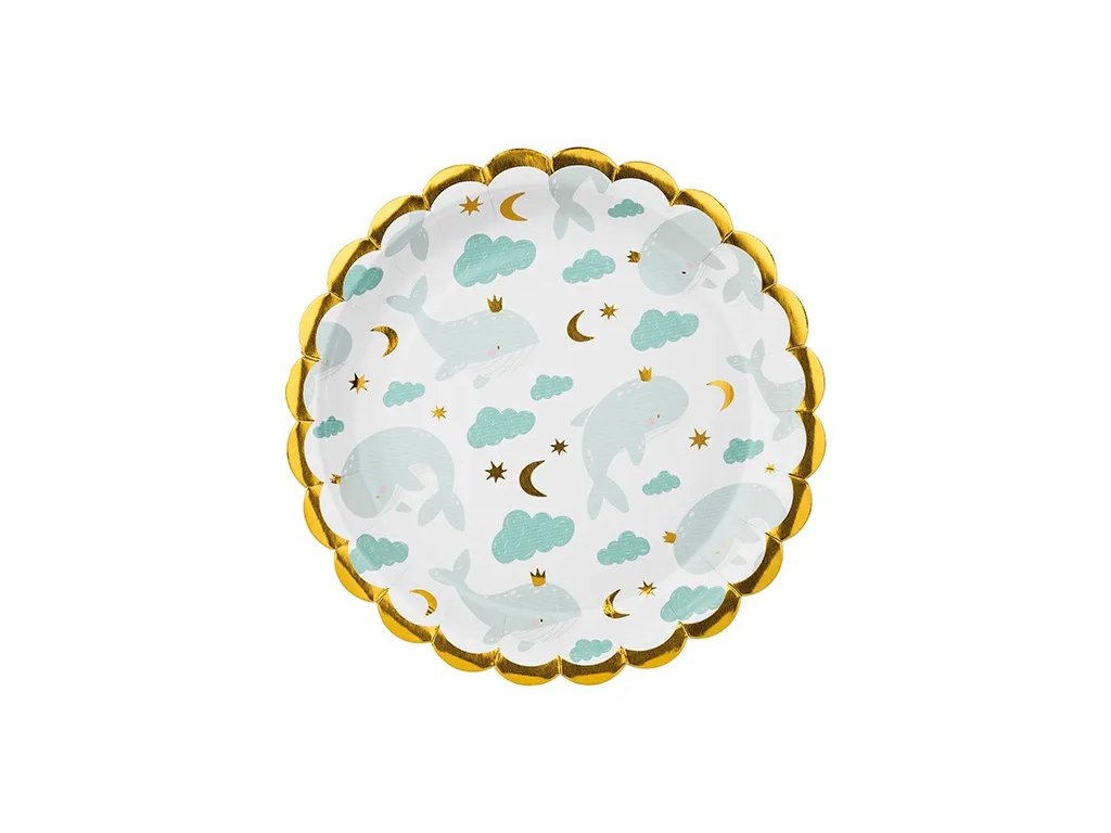 Talerzyki z nadrukiem wieloryba 18 cm, 6 szt