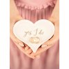 Talerzyk pod obrączki stanowi piękny element weselnej dekoracji, a także nieodłączny element każdego ślubu. Talerzyk w kształcie serca w białym kolorze i złotym napisem - "yes, I do" jest świetnym wyborem na Twoją uroczystość.
