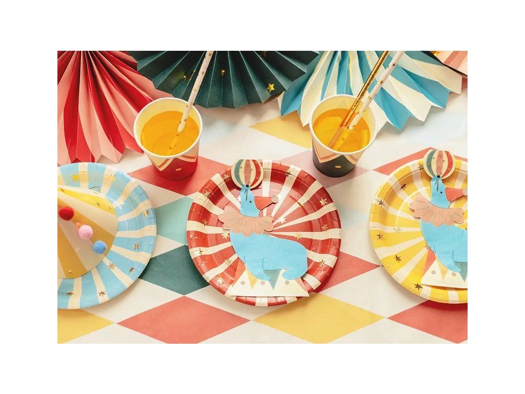 Rozkręć cyrk prosto na swoim stole! Papierowe talerzyki Cyrk (18 cm, 6 szt.) są stworzone na urodzinową zabawę, gdzie śmiech rozbrzmiewa głośniej niż trąbienie słonia. Każdy talerzyk to kolorowy akrobata, który bez wahania poradzi sobie z tortem, ciastem i górą śmiechu. Wystarczy je rozłożyć na stole, a nagle znajdziesz się na arenie pełnej balonów, radości i magii. Dzięki tym talerzom nawet zwykły kawałek tortu zamieni się w główną atrakcję wieczoru – uważaj, żeby ci nie uciekł! Przygotuj się na imprezę, gdzie każdy talerzyk jest gwiazdą cyrkowego przedstawienia!