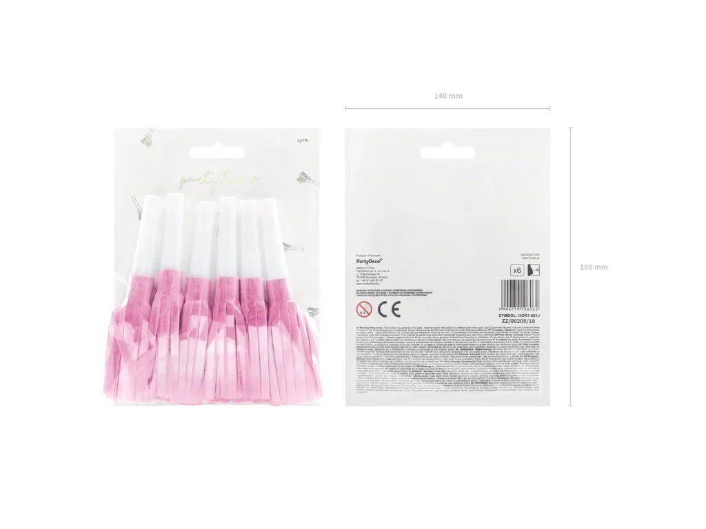 Rozkręć imprezę z różowymi trąbkami! W opakowaniu znajdziesz 6 wesołych trąbek, które rozbawią każdego gościa i zadbają o najlepszą atmosferę. Wystarczy dmuchnąć i zabawa gotowa! Idealne na urodziny, wieczory panieńskie lub każdą imprezę, gdzie nie brakuje śmiechu i dobrej zabawy. Z tymi różowymi trąbkami Twoja impreza będzie po prostu niezapomniana!