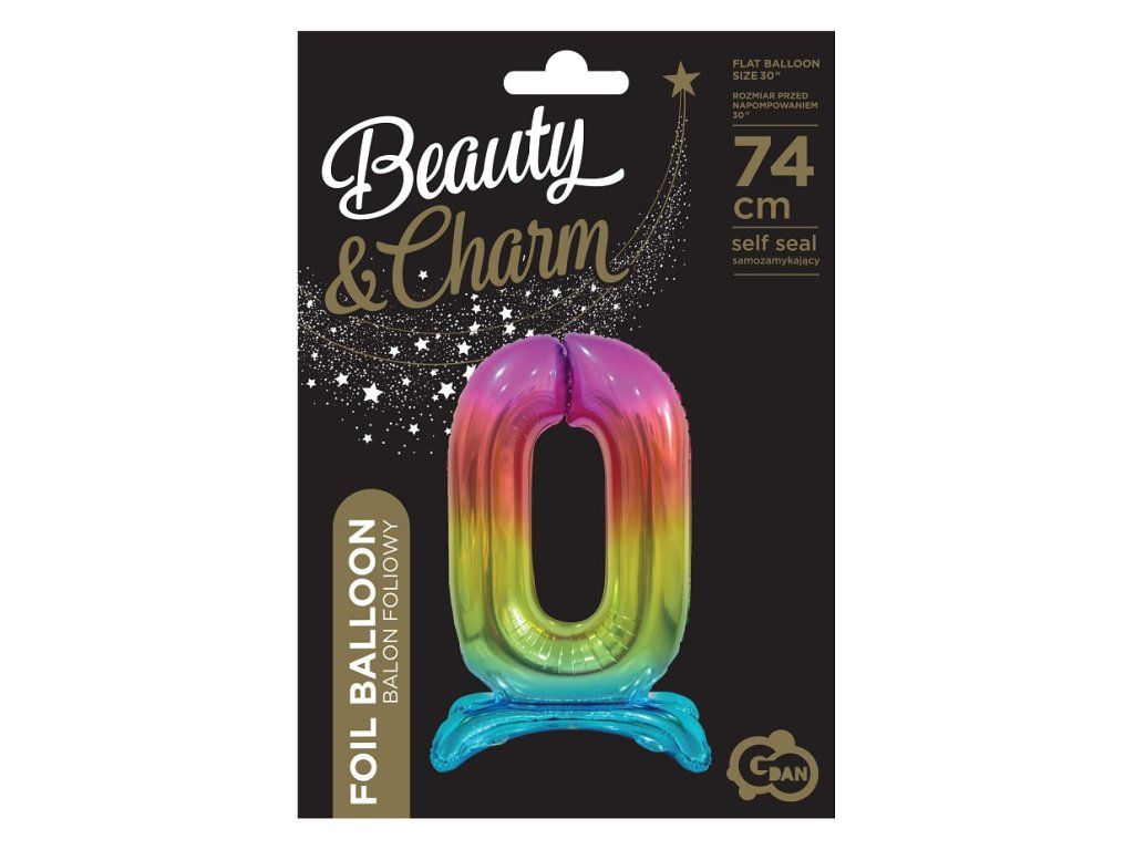 Wolnostojący balon foliowy 0 tęczowy 74 cm