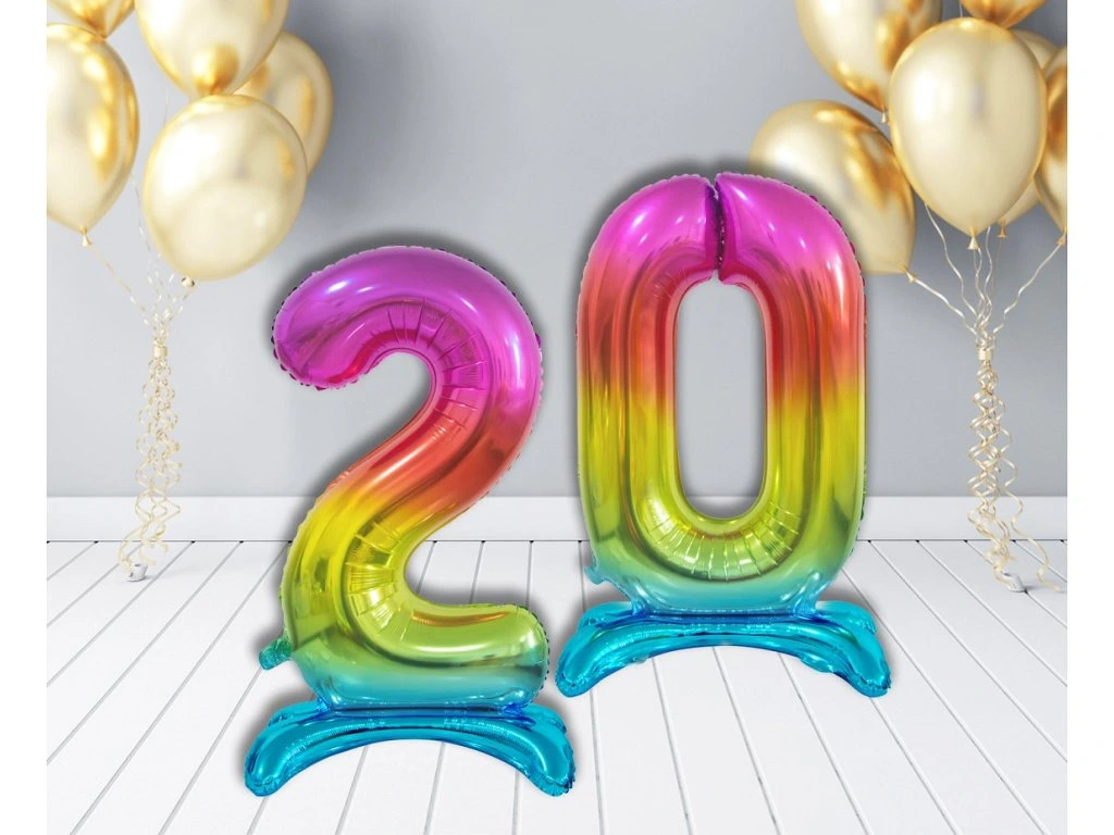Ożyw urodzinową dekorację wolnostojącymi balonami foliowymi w kształcie cyfry. Chociaż są droższe niż klasyczne balony lateksowe, ich zaletą jest jakość i nieprzepuszczalność. Wolnostojący balon foliowy ma tę zaletę, że będzie stał tam, gdzie go postawisz. Nadmuchiwane balony foliowe wytrzymują kilka miesięcy bez większych zmian.
