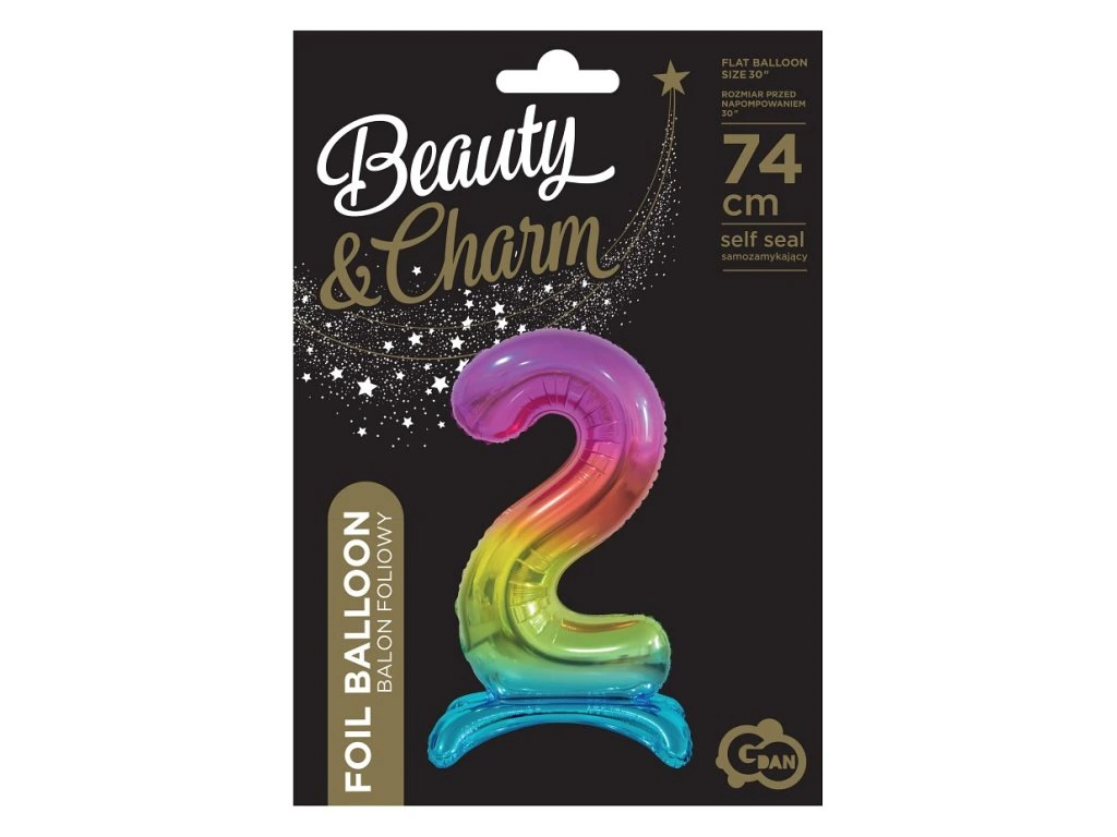 Wolnostojący balon foliowy 2 tęczowy 74 cm