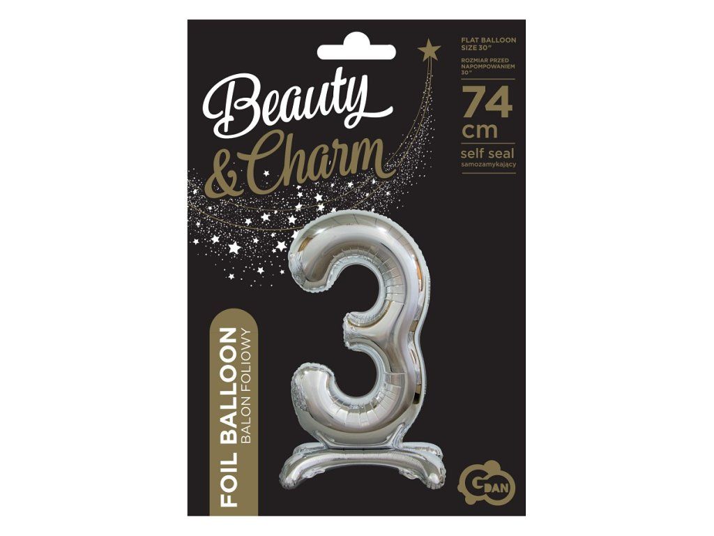 Wolnostojący balon foliowy 3 srebrny 74 cm