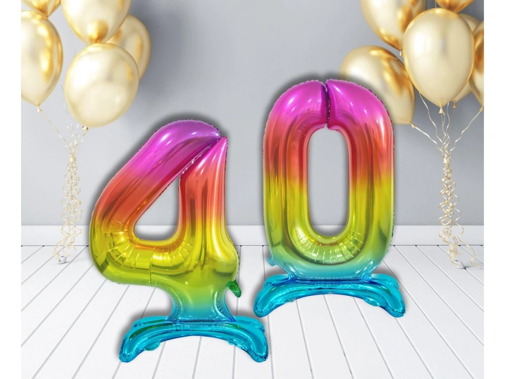 Ożyw urodzinową dekorację wolnostojącymi balonami foliowymi w kształcie cyfry. Chociaż są droższe niż klasyczne balony lateksowe, ich zaletą jest jakość i nieprzepuszczalność. Wolnostojący balon foliowy ma tę zaletę, że będzie stał tam, gdzie go postawisz. Nadmuchiwane balony foliowe wytrzymują kilka miesięcy bez większych zmian.