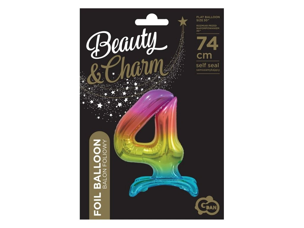 Wolnostojący balon foliowy 4 tęczowy 74 cm