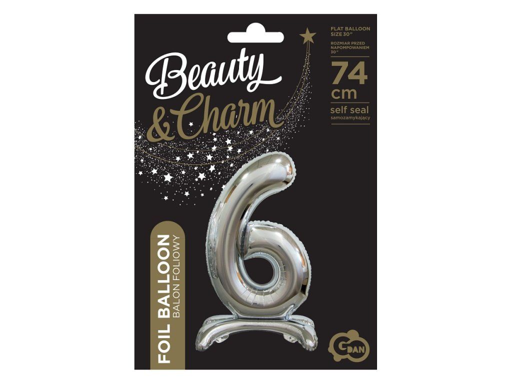 Wolnostojący balon foliowy 6 srebrny 74 cm