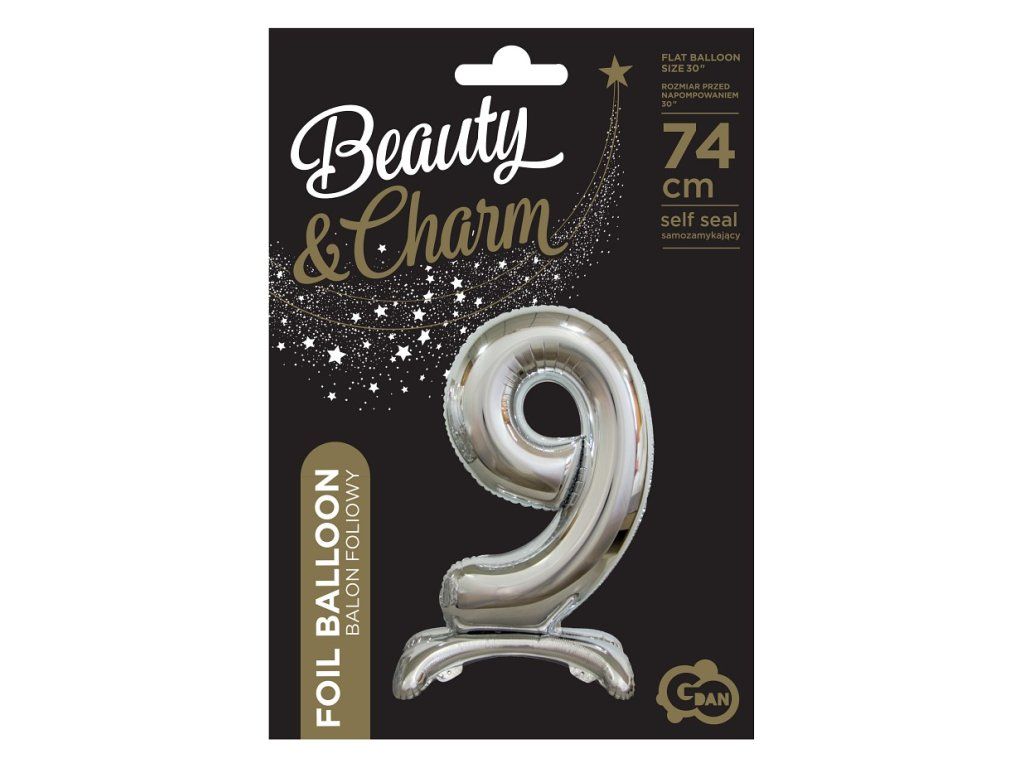 Wolnostojący balon foliowy 9 srebrny 74 cm