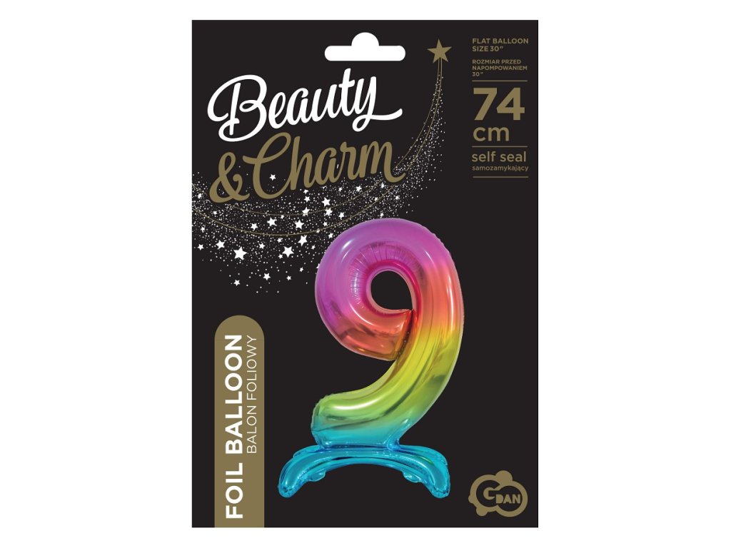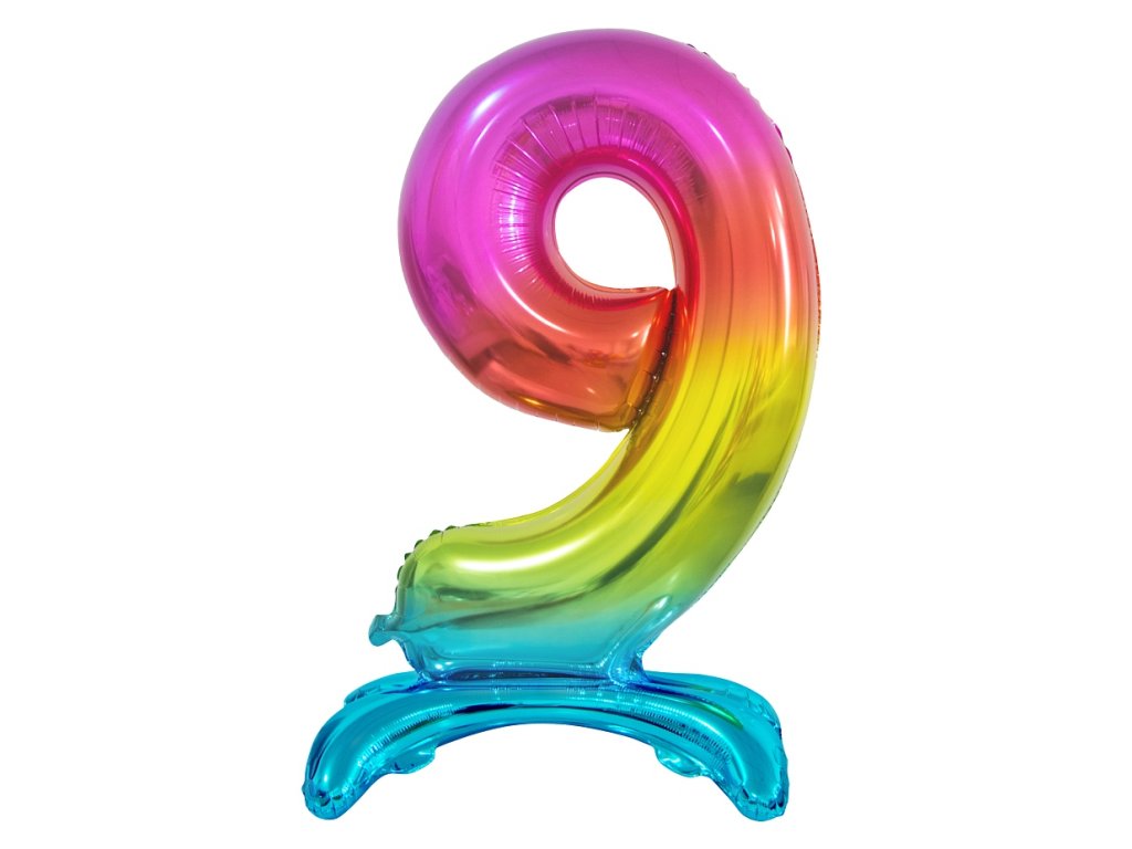 Wolnostojący balon foliowy 9 tęczowy 74 cm
