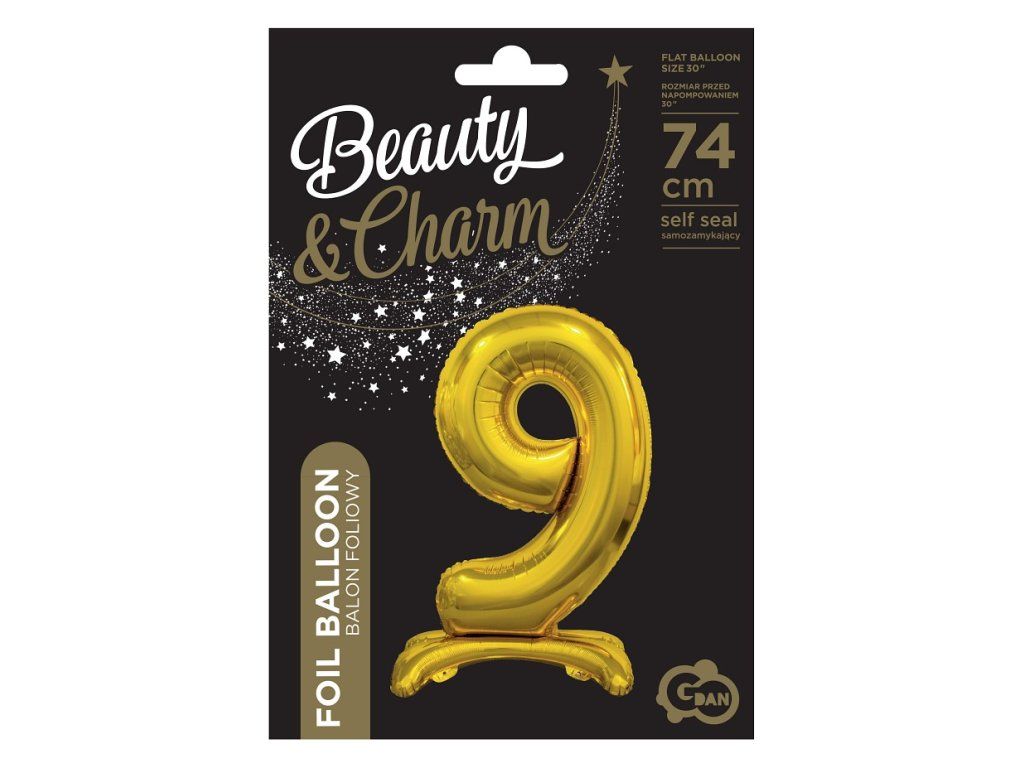 Wolnostojący balon foliowy 9 złoty 74 cm
