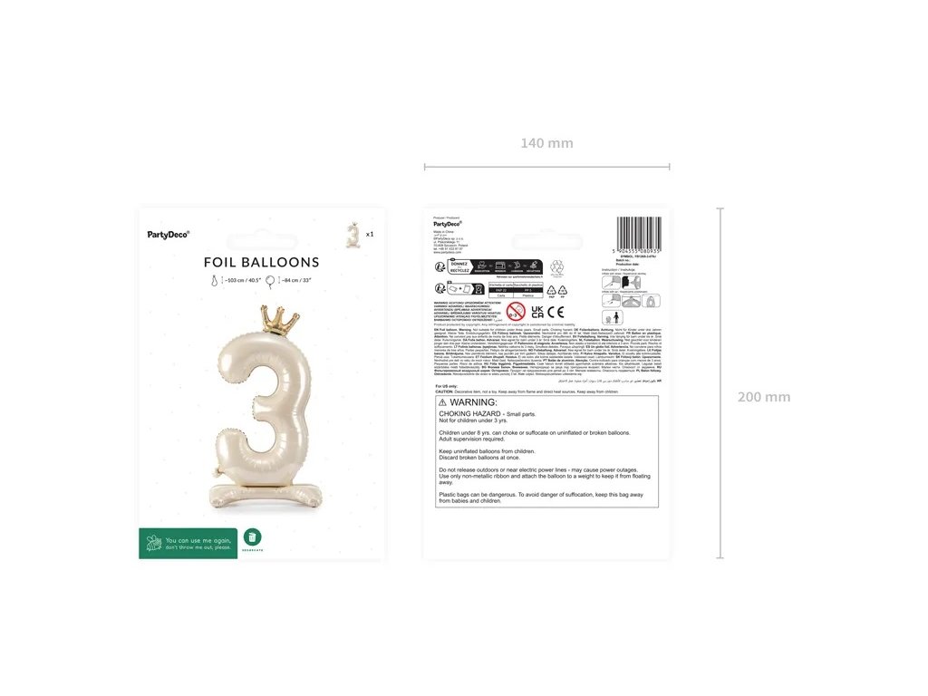 Impreza bez balonów? To byłaby nuda! Przedstawiamy samostojący balon foliowy w kształcie cyfry 3 w luksusowym, satynowo-kremowym wykończeniu, który ma aż 84 cm wysokości i jest gotów stać się gwiazdą każdej urodzinowej imprezy. Wystarczy go napompować, ustawić w honorowym miejscu i zabawa może się rozpocząć – bez wiązania, bez zmartwień, tylko czysta radość! Ten balon jest tak stylowy, że pozazdroszczą mu tego inne cyfry. Wywoła uśmiech na twarzy zarówno małych, jak i dużych solenizantów oraz na pewno przyciągnie wszystkie spojrzenia. Dodaj do swojej uroczystości solidną dawkę kolorów, radości i śmiechu z tym oryginalnym balonem – bo urodziny zasługują na to, by były wyjątkowe!